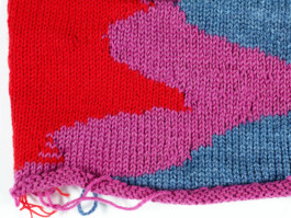 Strickkollektion von Wendebekleidung, inspiriert von Farb- und Mustermotiven der Bilder einer Malklasse für Menschen mit Beeinträchtigungen des „Vereins für Innere Mission Bremen“.